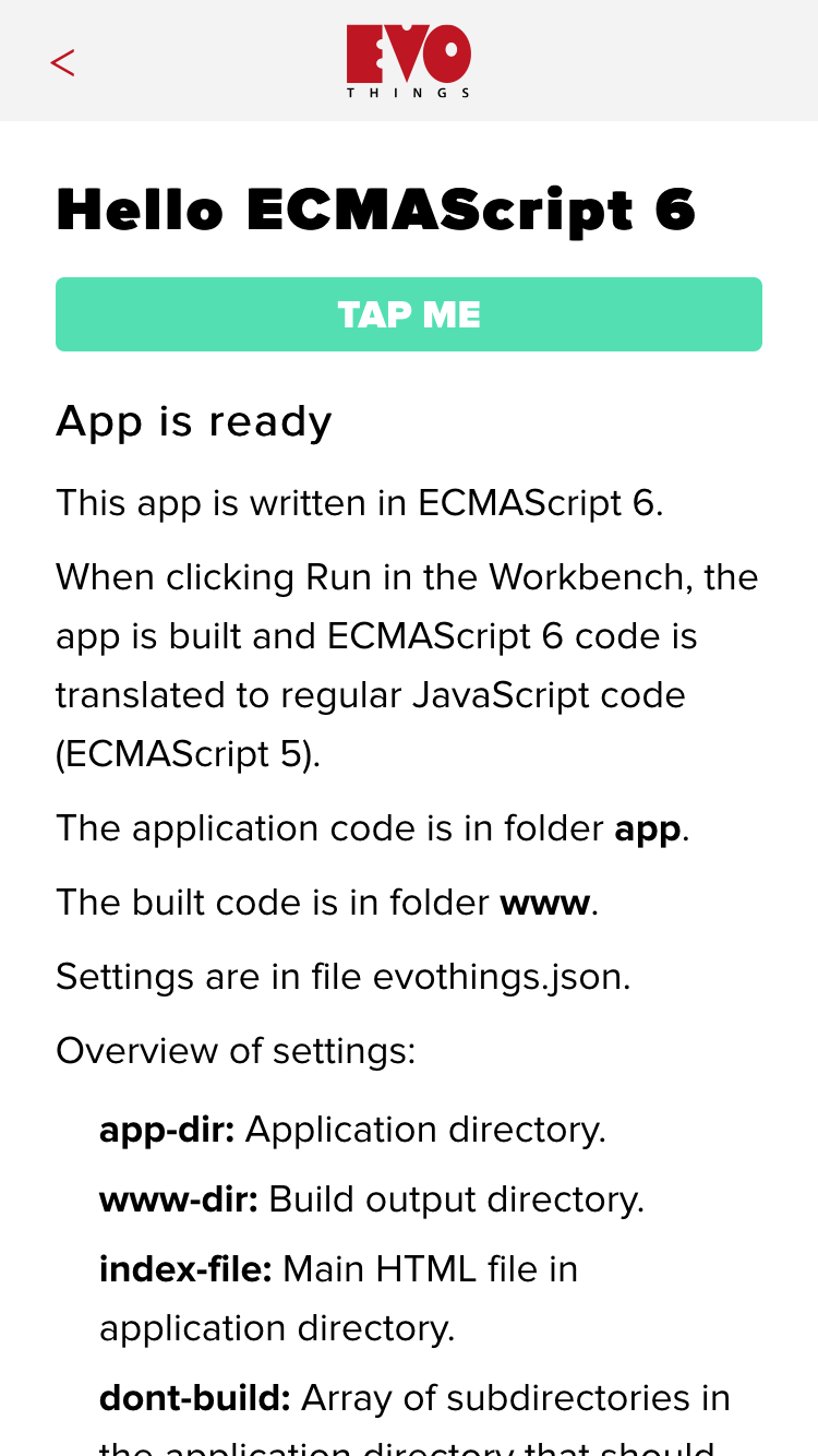 ECMAScript 6 apps are compiled into ECMAScript 5 ("ordinary" JavaScript) when you click RUN in the Workbench. Two folders are used: